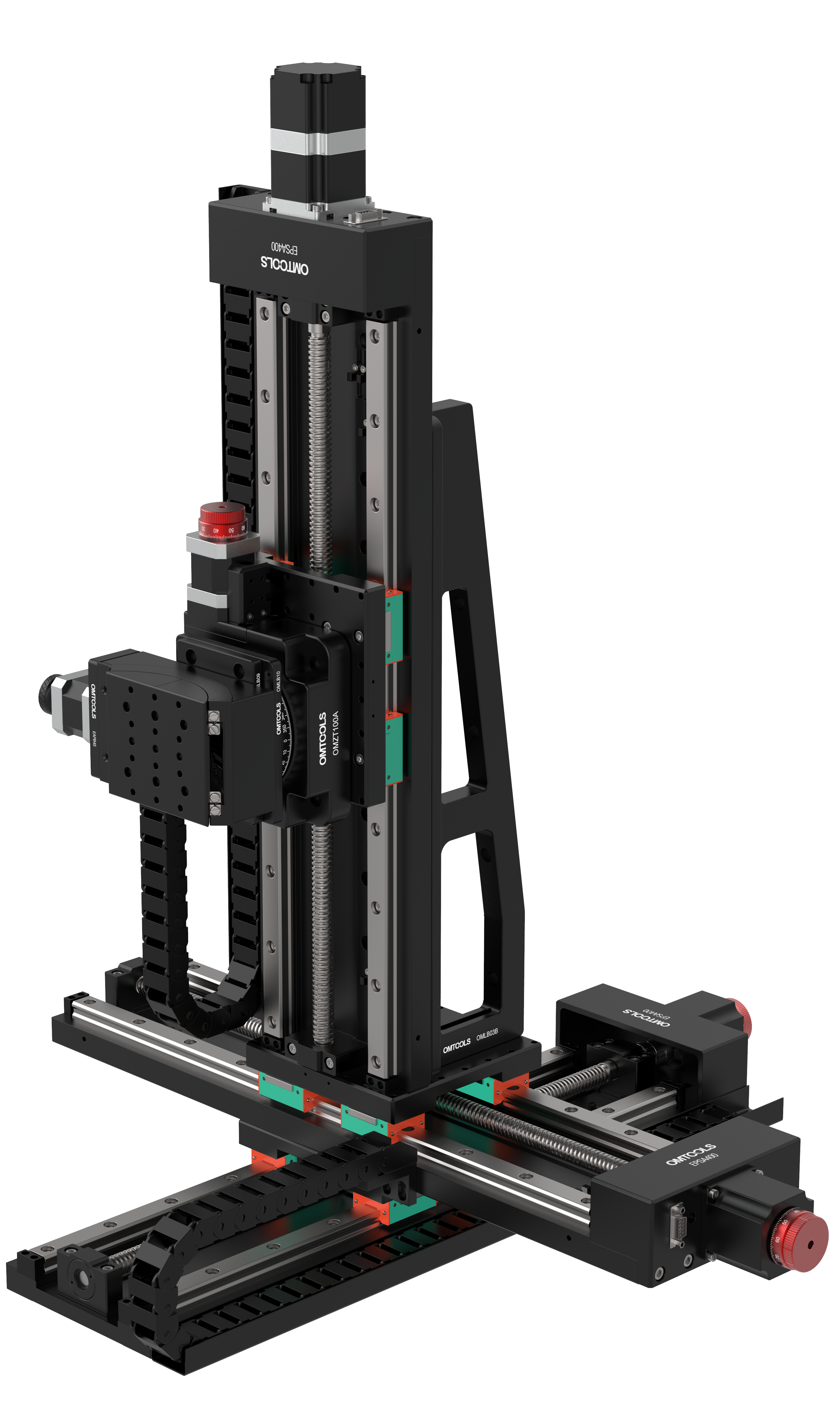 Моторизированный пятиосевой позиционер серии OMDDH05 состоит из комбинации пяти моторизированных трансляторов: линейного транслятора, гониометра, поворотной и подъёмной платформ, которые комбинируются в зависимости от модели.